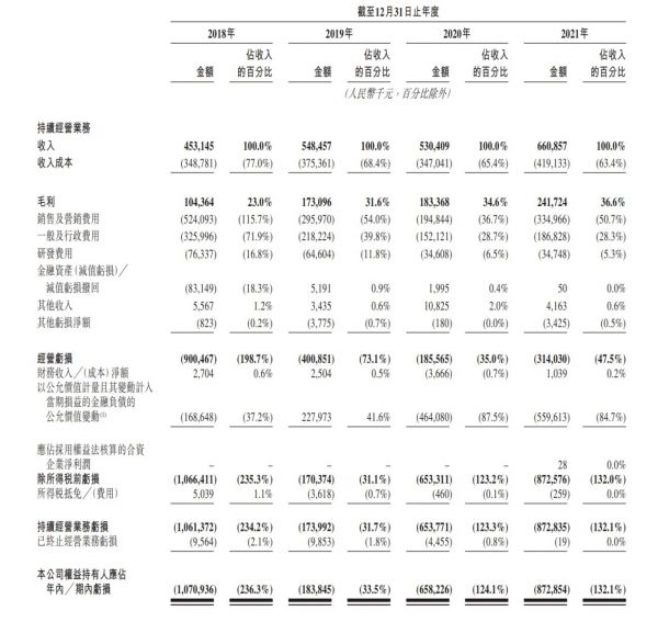 根据快狗打车招股书显示,2018年、2019年、2020年及2021年,快狗打车营收分别为4.53亿元、5.49亿元、5.3亿元、6.61亿元,有缓慢上涨的趋势。同期毛利分别为1.04亿元、1.73亿元、1.83亿元、2.42亿元。毛利率也是连年增长,分别为23.0%、31.6%、34.6%及36.6%。快狗打车表示毛利率增加,主要是由于平台服务的抽佣率提升及为成本控制方面的努力。