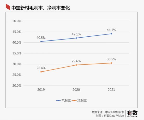 可光有出货量还不够,中宝新材的毛利率和净利率也很可观。