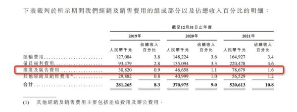 与此同时,加大营销力度,做高销量,扩大整体生意盘子,是消费行业的惯常策略。2021年卫龙推广及广告费用增长68%,达到0.787亿元。占收入比重也从1.1%,来到了1.6%,远高于同期研发费用。本质上,食品行业仍更趋于“营销驱动”。