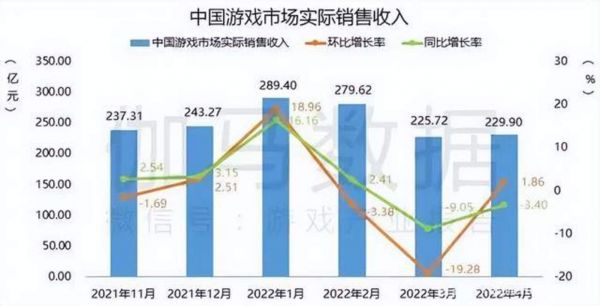 整个游戏市场正处在衰退当中,伽马数据发布的报告显示,2022年3月国内游戏市场实际销售收入同比下降9.05%,4月同比下降3.40%;游戏市场用户规模减小,中国游戏用户规模3月同比下降0.04%,4月同比下降0.01%。