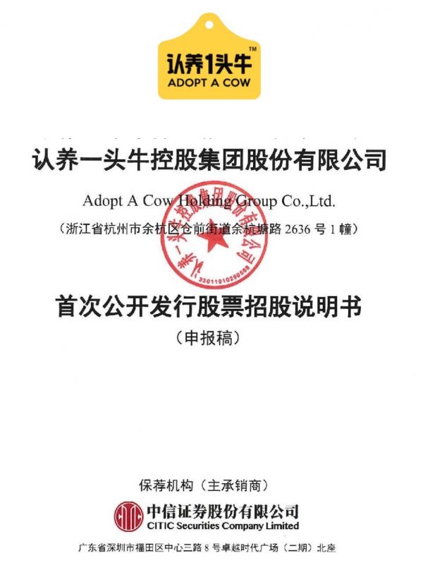 7月5日,证监会网站披露了认养一头牛控股集团股份有限公司首次公开发行股票招股说明书,计划冲刺上交所主板上市,中金证券为其保荐机构,拟发行不少于4047.06万股新股。