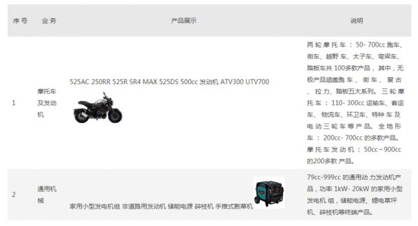 隆鑫通用主要产品 来源:公司年报