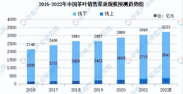 中国产业研究院数据显示,线上茶叶销售增速迅猛,由2016年的148亿元增加至2021年的330亿元,复合年增长率为17.4%,预计2022年中国茶叶市场线上销售渠道收益将达382亿元。尽管茶叶线上销售占比依然偏低,但现在已经成为重要的组成部分,且成为影响和制约茶叶单价的重要因素。