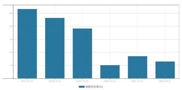 事实上公司的盈利能力也不断降低。近五年公司的毛利率从2017年的26.62%跌至2021年的8.49%,今年一季度进一步下降至6.45%。其中,园林工程毛利率4.85%,处于较低水平,园林设计毛利率56.13%,苗木销售毛利率15.19%。不过毛利率最低的园林工程一直占比最大,2021年占营收的比例达93.22%,拖累了整体毛利率。