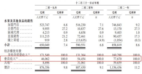 早在2018年,百果园做起了付费会员生意。 招股书显示,百果园当前会员数6700万,其中只有78万名付费会员。“会员店”计划显然不太成功,到2021年,百果园收入了0.7亿会员费,占比不到1%;