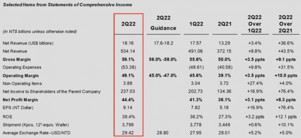 7月14日,台积电公布2022Q2财报,业绩坚挺,再次轻松超市场预期,净利润破纪录: