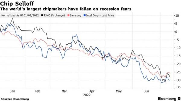 今年以来,头部半导体厂商遭抛售 图源:彭博