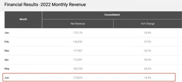今年上半年,台积电的每月营收表现持续增长迅猛,其中,5月单月营收为 1857亿新台币,同比增长达到了65.3%,但是到了6月,增速明显放缓,同比增长为18.5%。