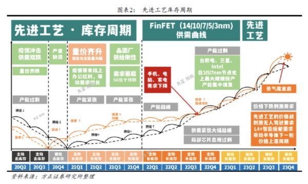 方正证券分析师陈杭团队判断,今年下半年,半导体行业进入量升价跌阶段——各大晶圆厂之前加大资本支出,现在产能逐步释放,但是以消费类为代表的手机、电脑、家电的需求去出现疲软,库存逐步高企,价格松动。