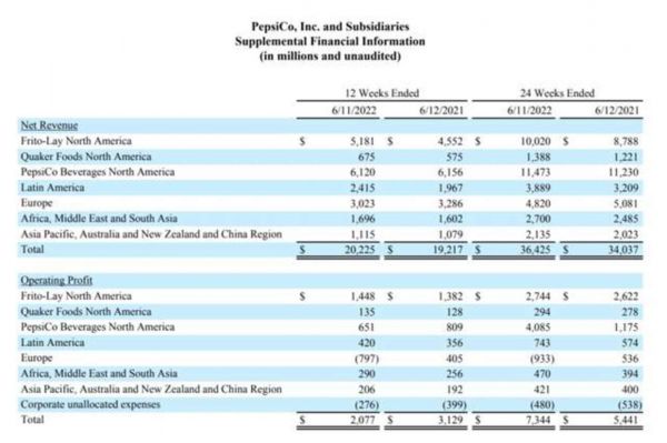 百事公司董事长兼首席执行官Ramon Laguarta在财报中表示对公司第二季度的业绩“感到满意”,“尽管宏观经济与地缘政治持续动荡,通胀水平进一步高企,但我们延续了业务势头。”