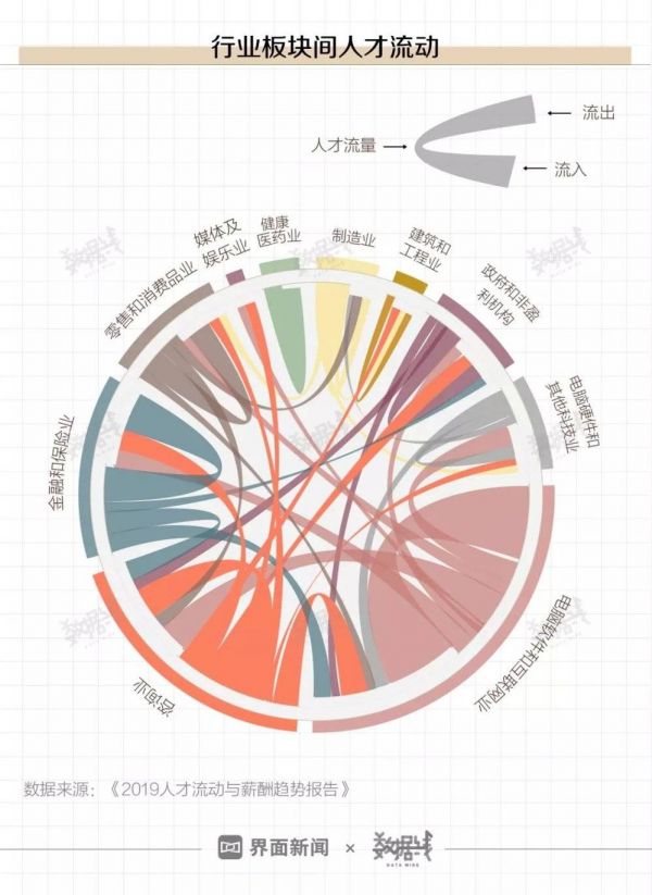 分行业来看,占到人才流入流出总量半数的计算机软硬件和咨询行业,人才流入流出亦维持均衡。