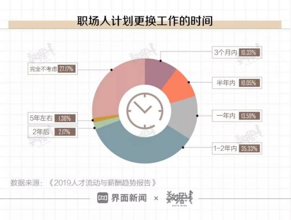 职场生存之道在于,身处其中也要有自己的盘算。《2019人才流动与薪酬趋势报告》显示,超六成职场人有跳槽意向(该调研样本超370人,以管理人员为主)。