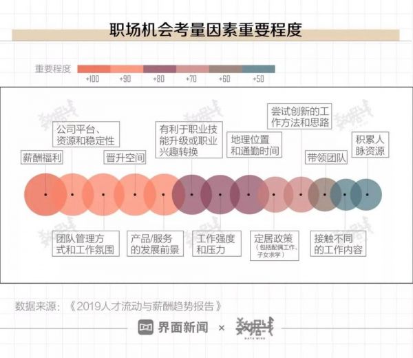 据《2019人才流动与薪酬趋势报告》,薪酬福利虽然是影响职业机会选择的重要因素,但已不是唯一考量。
