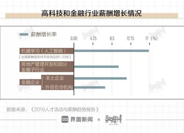 其中,机器学习领域的薪酬增长率达16.8%。房地产管理开发和部分金融子行业,薪酬增长达10%。