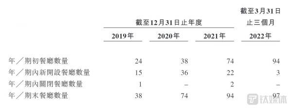特海国际拆分后的第一步也是动态调整餐厅扩张计划。2021年海特国际开始优先优化现有餐厅的表现,并减慢新餐厅开业的数量及广度。其新开的餐厅数量由2020年的36家减少至2021年的22家。而在2022年第一季度,仅开设了3家新餐厅。