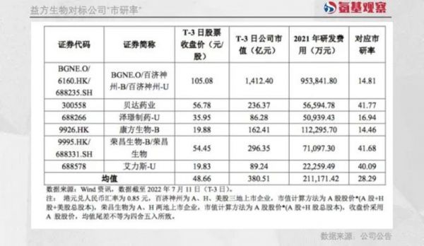如何评定这一估值是否合理呢?益方生物承销商祭出了“市研率”大法。2021年,公司研发费用为3.15亿元,摊薄后市研率为33.07倍。