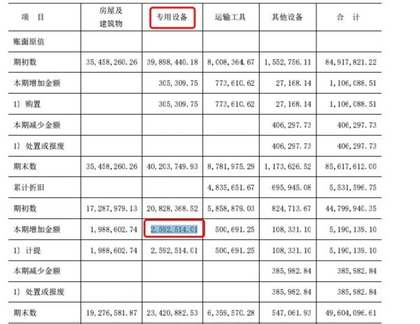 2020年1-6月专用设备折旧费用,来源于审计报告