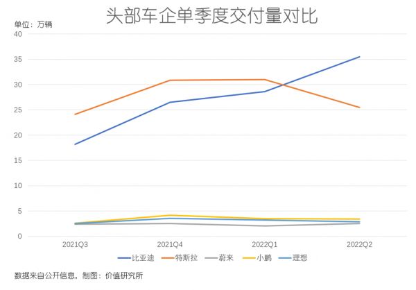 被比亚迪抢走新能源车交付王座,在未来很长一段时间内都会成为前者炫耀的资本,也会成为特斯拉心头的一块大石。但如果你细心观察,特斯拉、比亚迪还有“蔚小理”等头部玩家的交付量曲线发生逆转,并不是一朝一夕的事情。