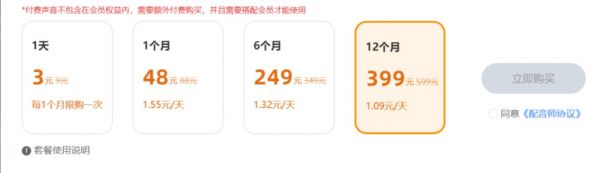 有了这门技术,一门生意就出现了。为了让这些声音变现,魔音工坊建立了声音商店,用户可以按天/月/年付费。
