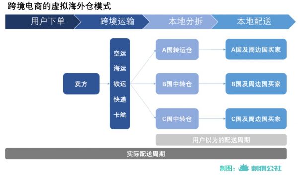 介于直发模式和海外仓模式中间,部分第三方物流企业发展出一种名为“虚拟海外仓”的模式,本质是对消费者使用障眼法,让消费者误以为商品会从本地仓库发货,但实际上在下单时,商品还远在大洋对岸。