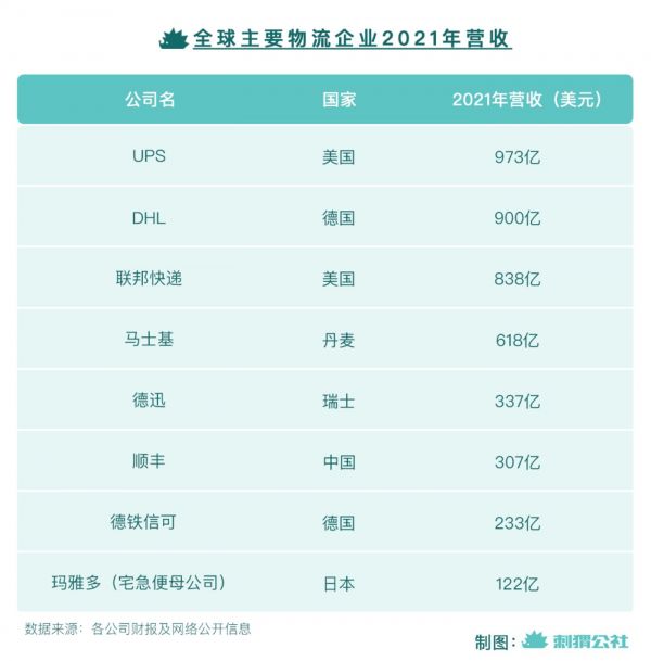 2021年,顺丰凭借307亿美元的总营收跻身全球物流公司营收前列。在它身前,UPS、DHL、联邦快递都是老牌快递巨头,在北美和欧洲市场有较强的统治力,马士基是全球最大的集装箱航运公司,德迅则是全球最大的海运代理公司。——在被疫情加速的线上消费浪潮下,这些物流公司各自取得高速业绩增长。而今年,顺丰有望凭借增速强劲的国际化业务冲击更靠前的位次。