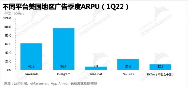 对比平台的单用户价值,从2016年前后正式开启商业化的Snapchat,商业变现能力是显著偏低的,或者说它的商业价值潜质离榨干还早。如果没有苹果ATT、没有TikTok,宏观环境不佳带来的压力,我们可以很自信的说这只是暂时性的摩擦,并且是整体行业都存在的逆风,周期过了收入就会回来。