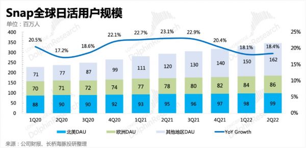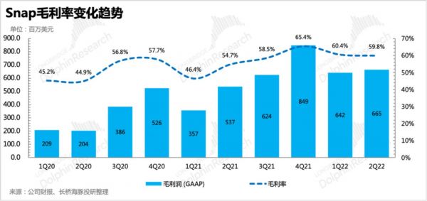 当在大环境发展边际向下的时刻,TikTok开始加速商业化。它目前可怕的增长势头以及对美国原有社交平台的影响,海豚君在《TikTok 要教 “大哥们” 做事,Google、Meta 要变天》这篇中已经有过详述。因此竞争的加剧,会使得Snap的营收及利润均会出现走弱的压力。