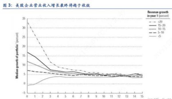 美股历史数据的回测表明,营收高增速的公司和低增速的公司,长期而言,有向平均增速收敛的趋势。