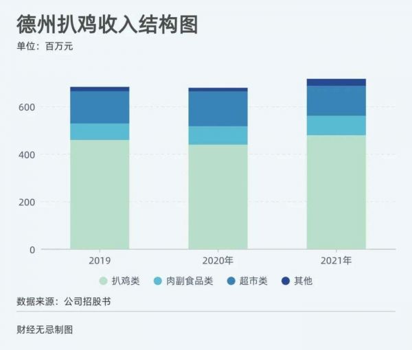 招股书显示,近三年来,扒鸡类产品占德州扒鸡总营收比例接近七成,毛利率逐年下降。在消费多元化的趋势下,盈利速度放缓的扒鸡类大单品无法拉动企业实现更快增长。