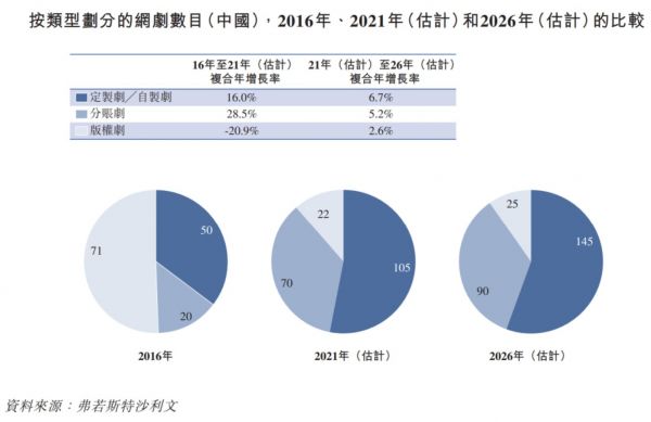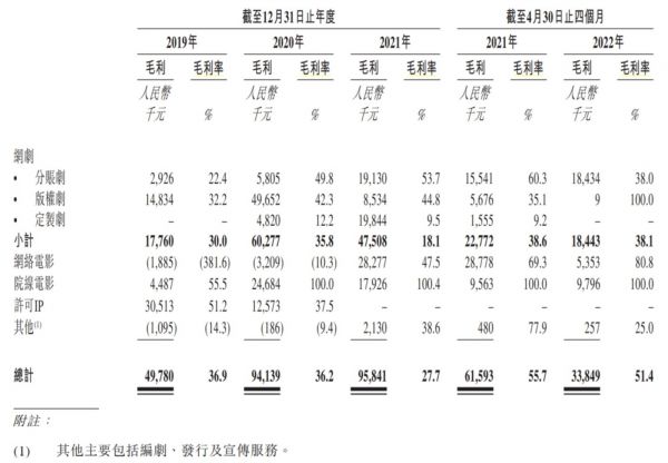 但强波动性意味着高风险,2022年前四个月,公司分账剧的毛利率便骤降至38%。且就当下的行业现状来说,弗若斯特沙利文数据显示,2021年至2026年,预计分账剧数目将从70部增长至90部,复合年增长率仅5.2%,而在2016年-2021年,这一数据则估计为28.5%。再加上随着视频平台的付费用户规模见顶,分账剧短期的票房上限难有大的突破,也很难真正带动公司的业绩增长。