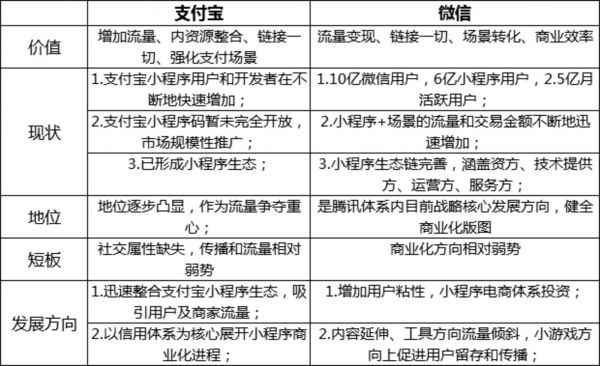 小程序成为支付宝吸取用户更多使用场景及截取长尾流量的工具,成为微信通过流量输入达成流量变现的工具。