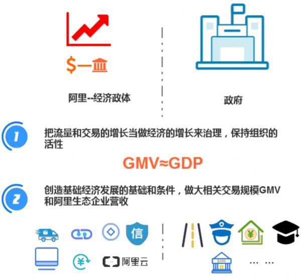 阿里经济政体:以增长阿里生态交易规模和盈利为中心,以治理国家的经济的方式类似,以谋求发展的组织;