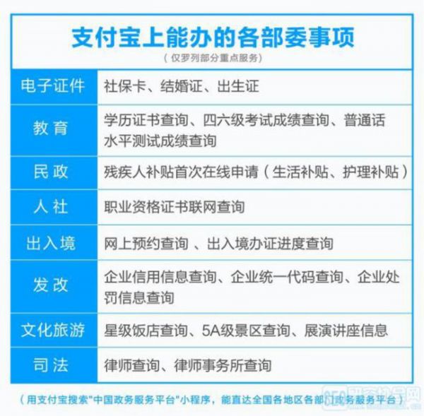 当一款APP成为生活必不可少的工具时,已经成功了,现在越来越多的人离不开支付宝了。天然的支付属性下,支付宝必然比微信更加更便捷和便于发展信用体系,并且作为未来国家征信,银行贷款等一些列场景的重要数据来源。今年一款名叫——中国政务服务平台的小程序上线于支付宝以及微信,意味着国家正视超级APP带来的价值,以及传播价值,在目前不断地被认可,支付宝“中国政务服务平台小程序”目前已接入46个国务院部门、32个地方政府的142万项政务服务事项办事指南以及近200项便民服务应用。小程序使用方法很简单,在支付宝首页搜索“中国政务服务平台”,点击进入即可获得电子证件、医疗、教育、交通、社保等多方面的政务服务。