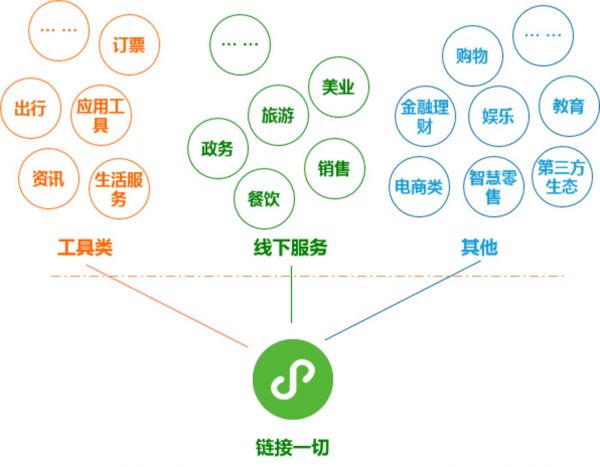 大量低频长尾App原本就处于不好的状态,可借助微信小程序获得再生。目前小程序分为六大类,涵盖零售、电商、线下服务等一系列场景,包括金融、物流、教育、交通、IT 科技、富媒体、生活服务等十余个领域,应用场景及其丰富,应有尽有。