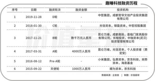 企查查数据显示,2015年小米系的顺为资本以及小米集团分别参与了趣睡科技的天使轮与Pre-A轮融资。截止招股书签署日,小米系合计拥有趣睡科技12%的股权,为后者的第一大机构股东。