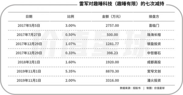 而眼看上市在即,顺为资本和小米似乎已经等不及。据招股书,2017年5月5日趣睡有限(即“趣睡科技”前身)发生第一次股权转让,协议约定顺为投资将其所持趣睡有限3%的股权以2757万元的价格转让给喜临门,雷军完成第一次套现。
