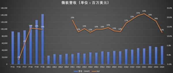 具体来看,微软2022财年Q4营收518.65亿美元,同比增长12%,低于分析师预期的524.5亿美元,创2019财年以来最低增速。
