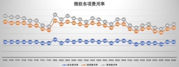 总体来说,微软各项费用率基本保持稳定,在费用方面的支出都有保持了有效的控制。