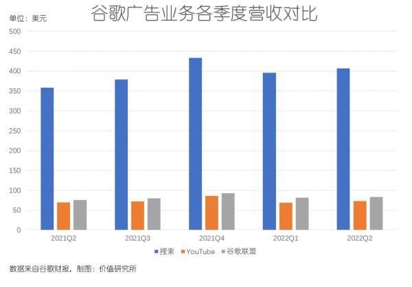 然而和集团总营收一样,谷歌广告业务也出现了增速放缓的问题,无论是环比还是同比。数据显示,去年二季度和今年一季度,谷歌广告业务营收分别为504亿和547亿美元,对应的同比增速则分别达到68.9%和22.3%。