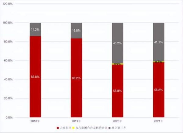 这个收购是在2020年12月31日达成。招股书能看到,2020年第三季度时,第三方占比还仅有14.8%,2020年全年数据时就有43%了,然而2021年开始有所回落。也就是说,力高健康主要还是靠母公司输送,自主外拓的能力是不足的。