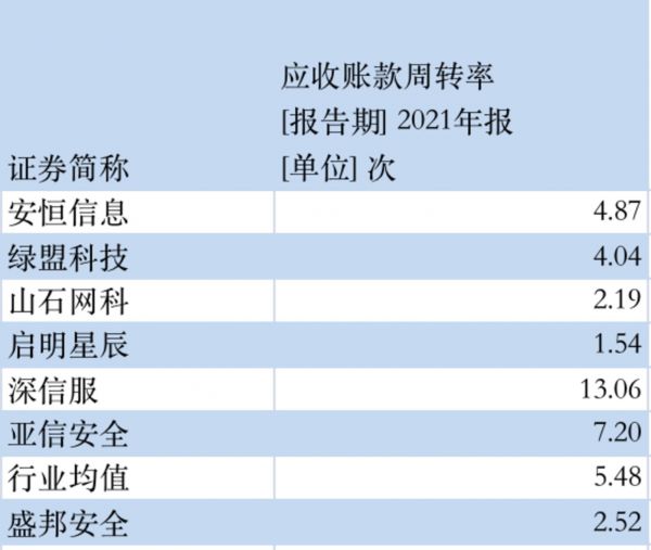 对此公司解释称,因公司主要通过直销模式为主进行业务开展,报告期各期大规模项目增多,终端客户付款相对较慢,导致期末未回款金额较高。不过从营运层面来看,公司应收账款周转率与同行比也明显落后,2021年仅2.52次,远低于行业均值5.48次。