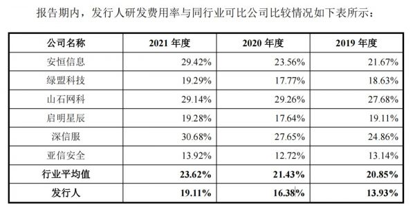近几年随着云计算、物联网、移动互联网等新技术、新模式的应用和发展,信息的获取方法、存储形态、传输渠道和处理方式等均发生了新的变化,增加了网络信息安全防护的难度,不断为网络信息安全行业技术升级带来新的挑战。然而,报告期内公司的研发费用却持续低于同行。