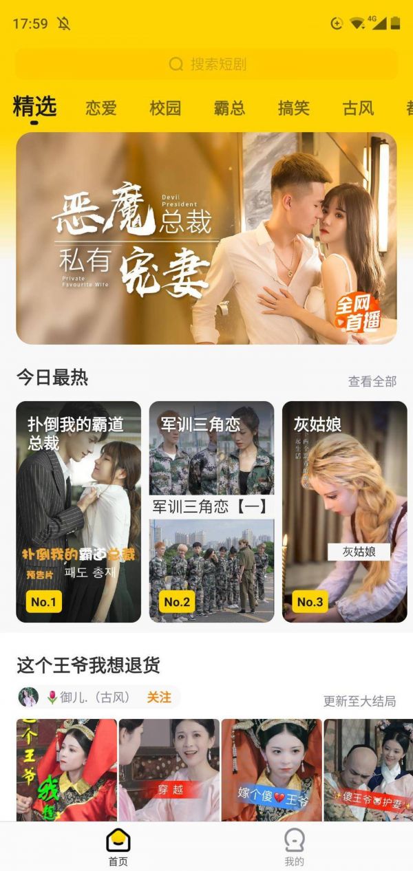 钛媒体(微信ID:taimeiti)下载体验发现,平台短剧以竖屏短剧为主,一集时长大约在60秒以内。首屏内容为近期精选,剧目内容共涉及恋爱、校园、霸道总裁、搞笑、古风、都市、友情、魔幻、逆袭、乡村、家庭和动画十二个品类。按照官方的宣发广告提供的数据,“追鸭”产品已上线逾5000集剧集,内容量可谓相当丰富。