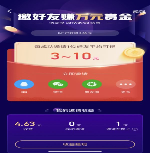 原则上邀请的新用户越多,赏金越多,但是,大概在用户邀请成功十几个用户之后,赏金额度就会不断下降,最低可能只有0.01,而目前,还没有看到领到188元最高赏金的。
