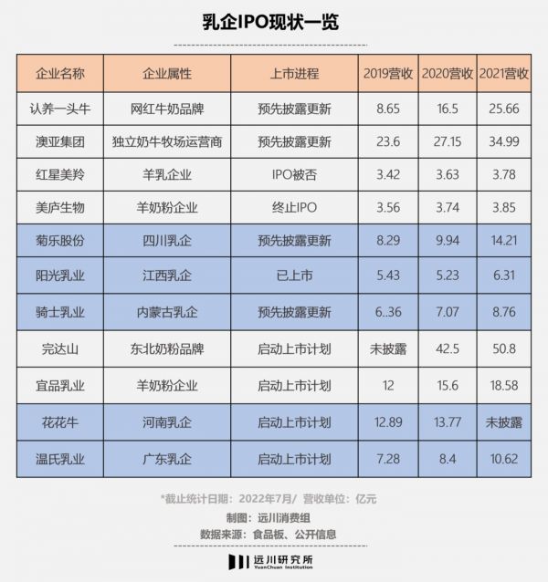 这场IPO竞赛自2020年前后开启,包括品渥食品、熊猫乳品、一鸣食品在内的多家乳企已经成功登陆上交所。