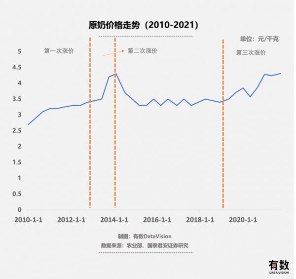 而在每一轮奶周期后,赢家都是大企业。原因很简单,家大业大的乳企更能涨价。