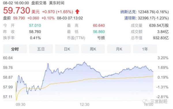 京东美股股价报59.73美元,总市值932.83亿美元;