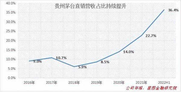 今年3月31日,茅台自营电商平台“i茅台”上线运营,销售虎茅、珍品、1935、礼盒虎茅和100ml小茅台共五款产品,商品定价与指导价一致。据半年报数据,二季度i茅台仅凭借上述五款产品便实现酒类不含税收入44.16亿元,营收占比16.8%,推动了茅台直销占比快速提升。2022年上半年,茅台直销占比为36.4%,较去年全年提升了11.7个百分点。