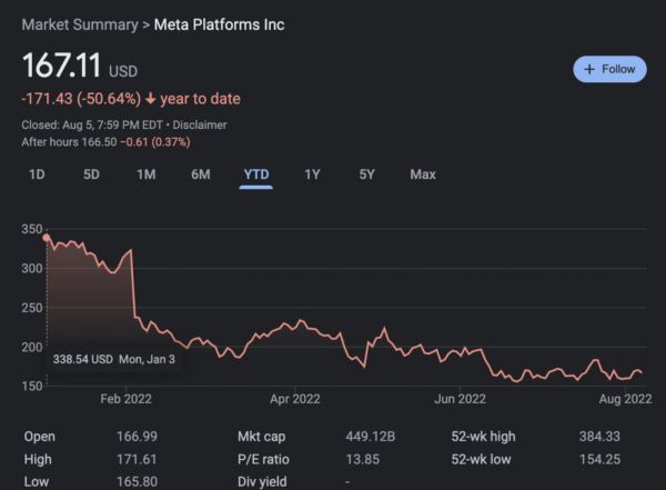 Meta今年以来股价走势