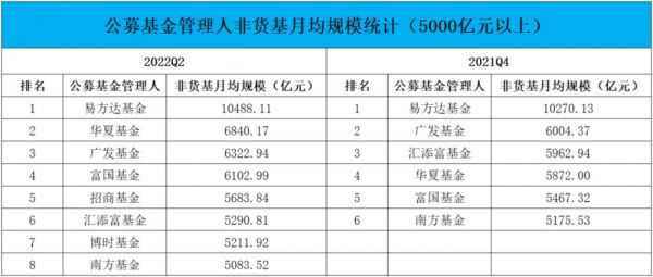 另一值得玩味的现象是,5000亿元至万亿元阵营的基金公司已从去年年底的5家增至7家。其中,招商基金表现最为抢眼,首次跻身前五,排在华夏、广发、富国之后。